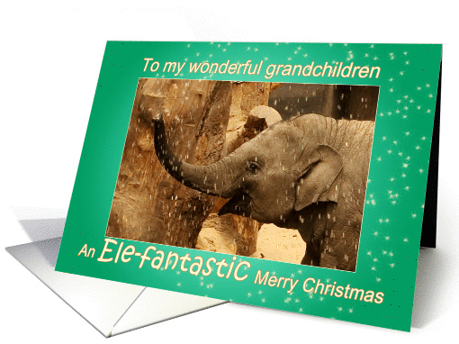 | Inside: | To my wonderful grandchildren This little Baby Elephant sends each one of you a shower of golden stars! Have a wonderful, Ele-fantastic Christmas and a Happy New Year. With much love, |
