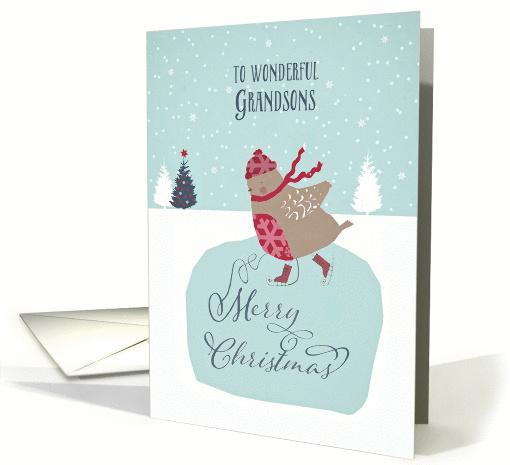| Title: | To my wonderful grandsons, Christmas card, skating robin |