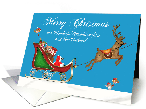 | Artist Notes: | Say Merry Christmas to a wonderful granddaughter and her husband with a cute raccoon Santa Claus, Sugar Bear in a sleigh filled with a present, bow, Christmas tree, doll, candy cane Santa bag pulled by a reindeer on a snowy ground with a cute mouse and bird playing with a snowball. Inside like all Greeting Card Universe cards can be personalized by you if you wish to give it your own personal touch. Sugar Bear is a very sweet, intelligent eleven year old Wildlife Ambassador. He helps me educate the public about his magnificent species when he is not being Santa Claus, of coarse! |