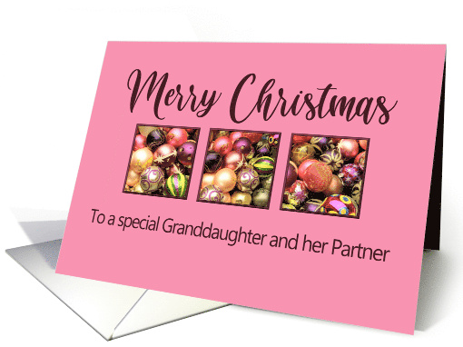 Granddaughter and her Partner Merry Christmas Colored Baubles on Pink