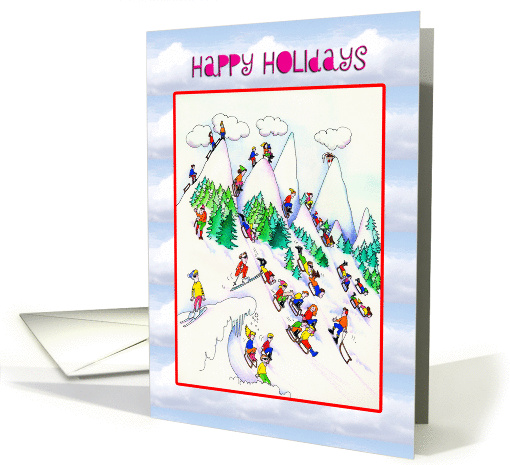 | Title: | Happy Holidays- Christmas- skiers and Toboggan |