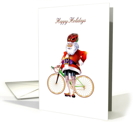 | Title: | Bicycle riding Santa with muscular legs Christmas card |