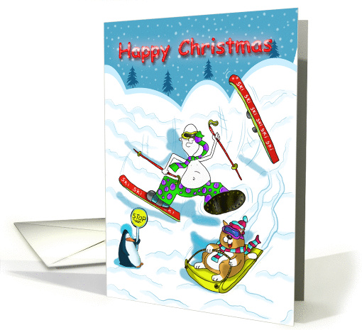 | Title: | Funny skiing Happy Christmas card, Fat Cat and Duncan |