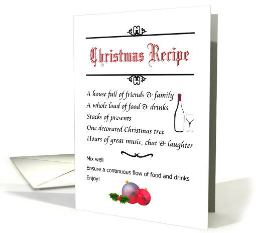 A Christmas recipe with all the ingredients for a great festive season - friends and family, lots to eat and drink, loads of presents, music and laughter.