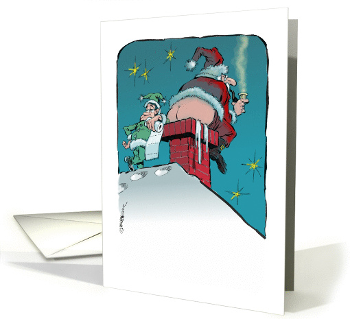 Off-color Santa & chimney employee thank you cartoon