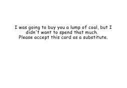 I was going to buy you a lump of coal, but I didn't want to spend that much.