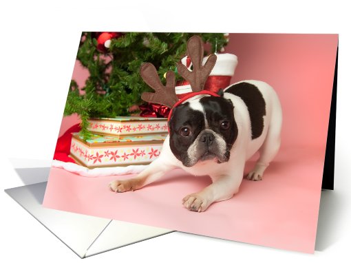 Pied French Bulldog Christmas Card