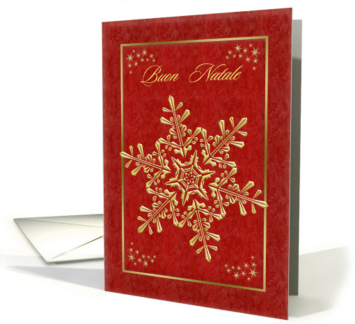 | Title: | Buon Natale Italian Christmas card - gold snowflakes on red background |