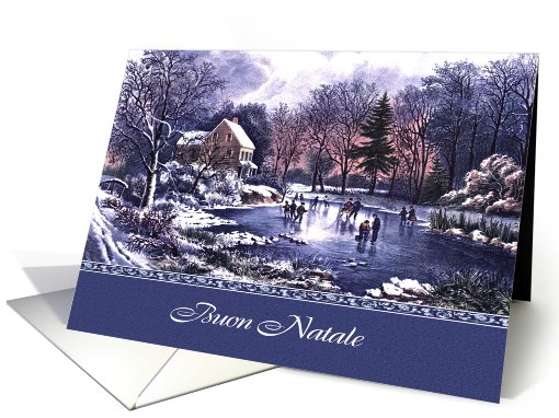 | Title: | Buon Natale. Italian Christmas Card with Vintage Winter Scene |