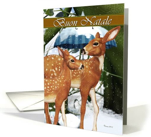 | Title: | Buon Natale - Italian, Doe and Fawn, Deer, Snow, Winter Christmas Card |