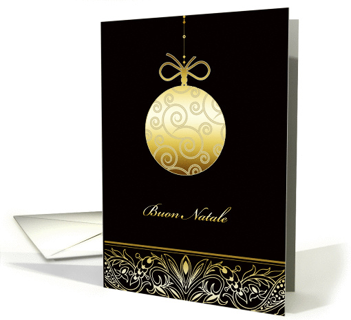 | Artist Notes: | This elegant Christmas card features a golden glass ornament or bauble and golden swirls. Text on front reads: Buon Natale = merry Christmas in Italian |