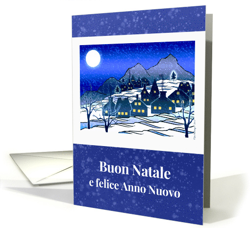 | Title: | Italian Christmas Buon Natale with Snowy Village in Blue |