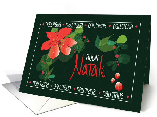 | Artist Notes: | Bella carta Italiano che dice "Buon Natale" e ha flore stella di Natale. Carta dice "Buon Natale" e "Dall'Italia". (In English: "Merry Christmas" and "From Italy"). A beautiful Italian card that says "Merry Christmas", in Italian, with a colorful Christmas poinsettia flower and wording all around the edge that repeats with "Dall'Italia" (In English: "From Italy"). Inside message says "Buone Le Feste." (In English: "Happy Holidays.") |