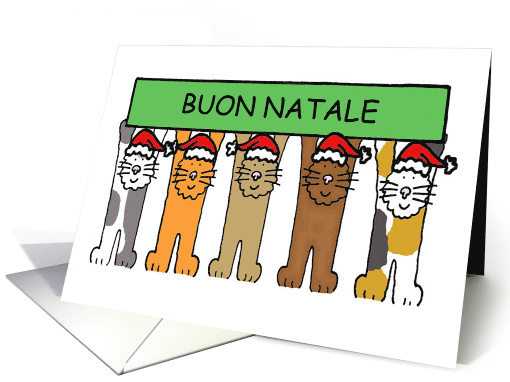 | Title: | Buon Natale Happy Christmas in Italian Cartoon Cats in Santa Hats |