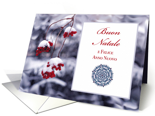 | Title: | Italian Christmas Buon Natale with Red Berries in Snow |