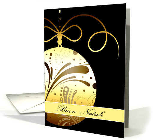 | Artist Notes: | Send Christmas wishes in Italian. Buon Natale = Merry Christmas. This contemporary, elegant Christmas card features a glass bauble or ornament with swirls on a black background. You can edit text inside. |