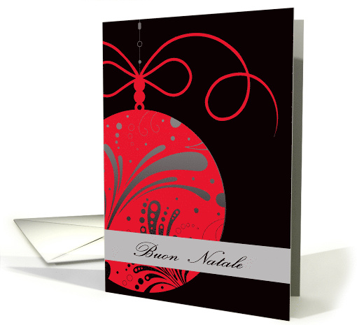 | Artist Notes: | Send Christmas wishes in Italian. Buon Natale = Merry Christmas. This contemporary, elegant Christmas card features a glass bauble or ornament with swirls on a black background. You can edit text inside. |