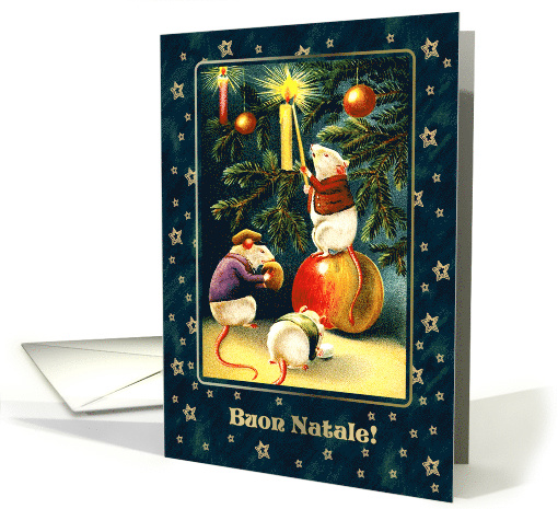 | Artist Notes: | Fun Christmas Greeting Card in Italian with vintage funny mice and message on front of the card translated as " Merry Christmas ". |