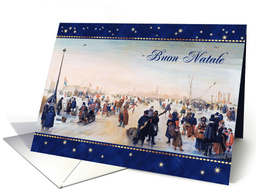 | Artist Notes: | Christmas Holiday Season's Greeting Card in Italian with a beautiful Ice Skating winter scene painting of Hendrick Avercamp (17th century) restored for you by Mairin Studio. The verse in Italian on front of the card translated as "Merry Christmas ". |