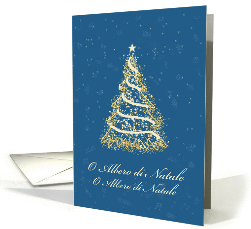 | Artist Notes: | This beautiful greeting is in Italian and features a gold and white sparkling tree on a blue background. Perfect for your holiday greeting cards. Inside verse can be edited by you. Original tree artwork by Delightfuldoodles. |