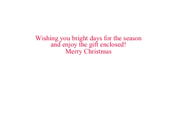 Inside: Wishing you bright days for the season and enjoy the gift enclosed! Merry Christmas