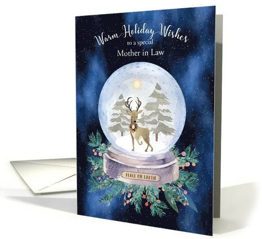 | Artist Notes: | Mother in law Christmas card with watercolor nature inspired Peace on Earth snow globe with snowy winter reindeer scene. |