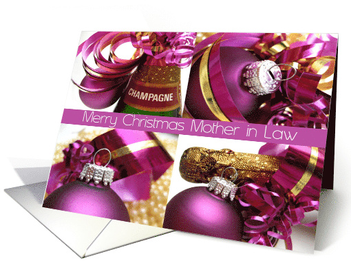 | Artist Notes: | Purple christmas baubles and champagne for your Mother in Law. Make her holidays extra festive with this Christmas collage. Created by Studio Porto Sabbia and available for other family members too. |