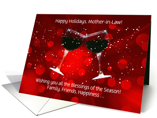 | Artist Notes: | Holiday card for your Mother in Law. Send seasonal blessings with this funny wine glasses and snow festive changeable text on the front card. |