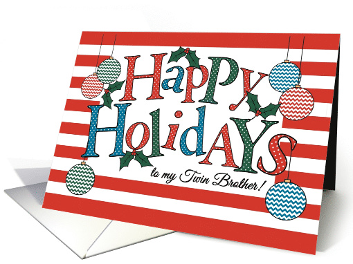 | Title: | Fun Happy Holidays card for Twin Brother, Colorful Baubles and Holly |