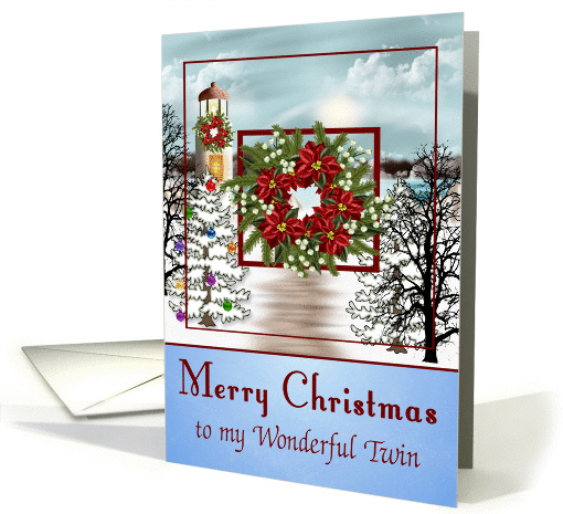 | Title: | Christmas to Twin, snowy lighthouse scene on blue with a wreath |