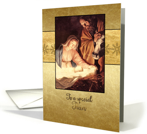 | Title: | Merry Christmas to my twin, scripture, nativity, gold effect |