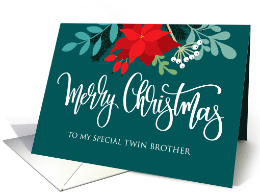 | Artist Notes: | A lovely card with Christmas florals (including poinsettia, rosehip, Winter berries and pine branches) on the top of the card with the words Merry Christmas to my special twin brother on the front of the card. |