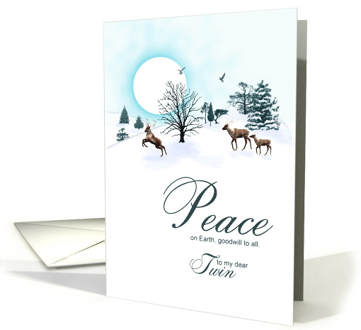 | Artist Notes: | Wish a peaceful Christmas to your twin. A snowy moonlight scene. A family of reindeer walk on a snow covered mountain. In the background the full moon shines down on winter trees. |