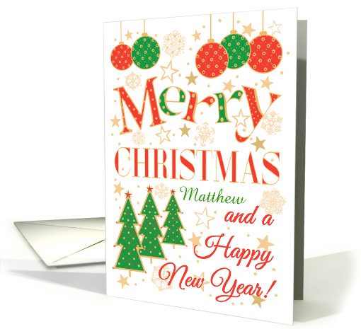 | Title: | Custom Name Christmas Greetings with Baubles and Christmas Trees |