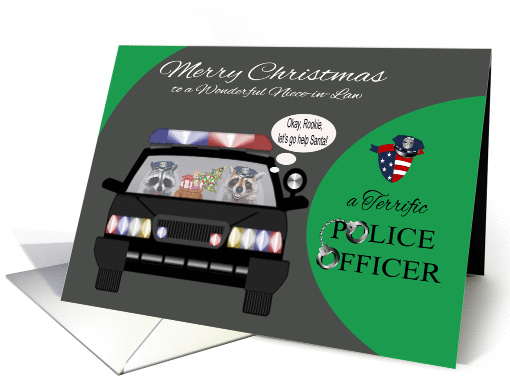 Christmas to Niece-in-Law, adorable raccoons in a police car, badge