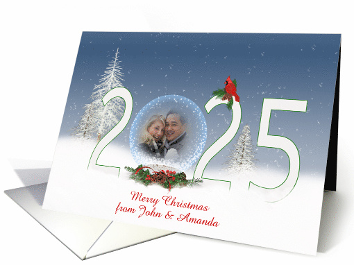 | Title: | Christmas 2025 Snow Globe Photo Card with Snowflakes |