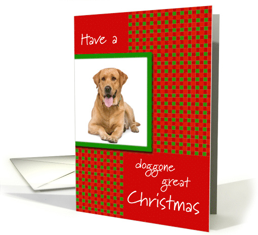 | Artist Notes: | Add your cute pooch's photo to this festive "doggone great" red & green checked Christmas card. Designed by Rycky Creations. |