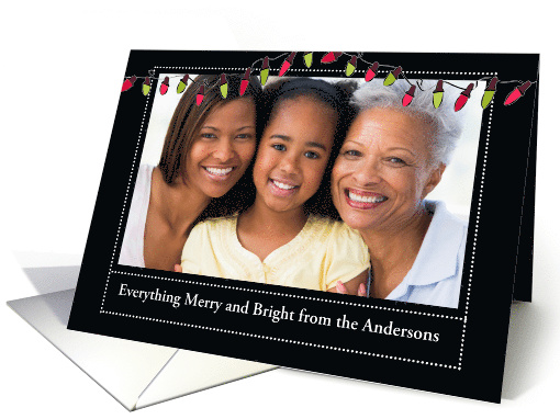 | Title: | Photo card, Christmas, Customizable, Light Bulbs, Green and Red |