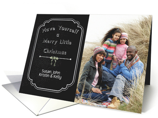 | Artist Notes: | A trendy Christmas photo card with black chalkboard background, white frame with "Have yourself a Merry Little Christmas" vintage style text and a green bow accent. Add your own special photo for a special holiday greeting. |