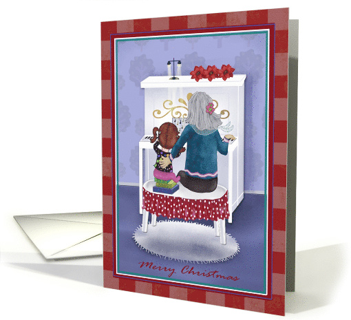 Merry Christmas Piano Teacher with Child, Teacher at Piano