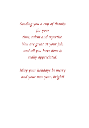 This card is right in tune to give to a talented piano teacher to say “Thank You” and send holiday wishes as well. The front shows poinsettia flowers being held inside a cute coffee cup.