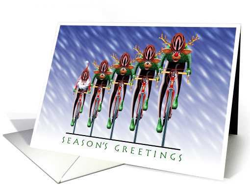 This is a great very cute Christmas card for sending to other cycling friends. The colors are nice and I appreciated being able to select our own font and colors for the inside message. Only thing I am not a happy with is the white boarder around the edge on the front is not even/the same size all the way around, but others will probably not notice it. I would purchase these again. I purchased 8 total.