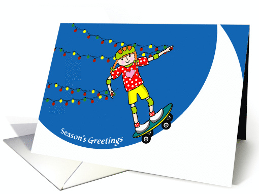 | Title: | Season's Greetings with Girl Skateboarder and Christmas Lights |