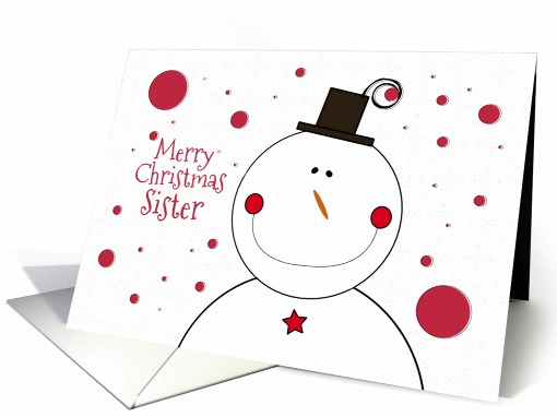 | Artist Notes: | Send Merry Christmas Sister greetings with this fun design of a smiling snowman wearing a black top hat on a white background with floating circles. |