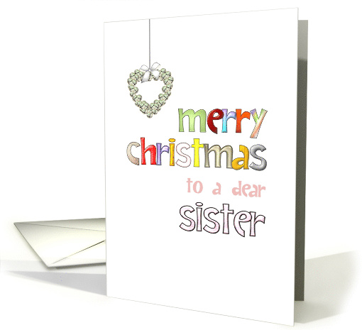 | Artist Notes: | Colorful letters spelling out a Christmas greeting for a sister. A heart shaped ornament made of little sleigh bells hang from the top left corner of the card. All effects are digitally rendered. |