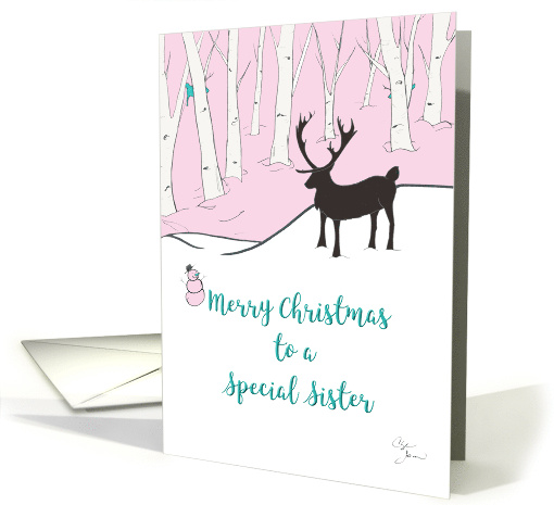 | Title: | Merry Christmas Special Sister Whimsical Reindeer Pink Forest |