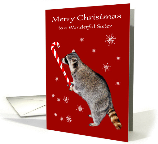 | Title: | Christmas to Sister, Raccoon eating a big red and white candy cane |
