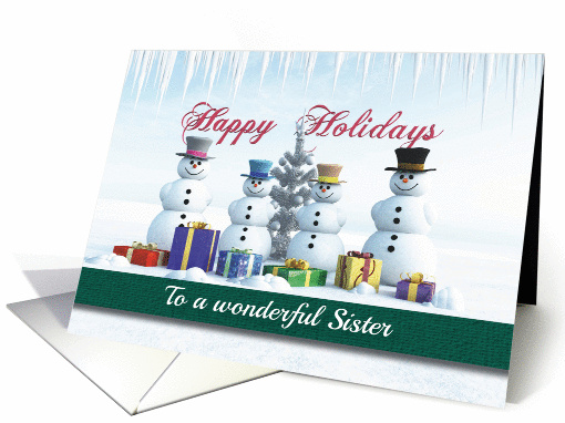 | Title: | Happy Holidays Presents Snowmen and Tree for Sister |