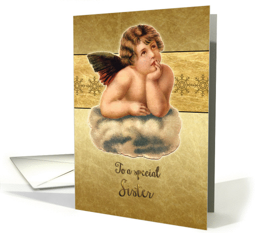 | Title: | Merry Christmas to my sister, vintage cherub, gold effect |