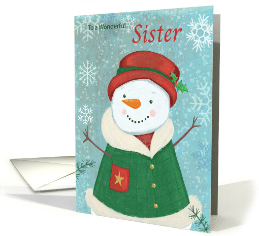 | Artist Notes: | Cute Sister Christmas Holiday card depicting an adorable wintery snowman/lady character in soft painted pastels. ©DaleSimpson |